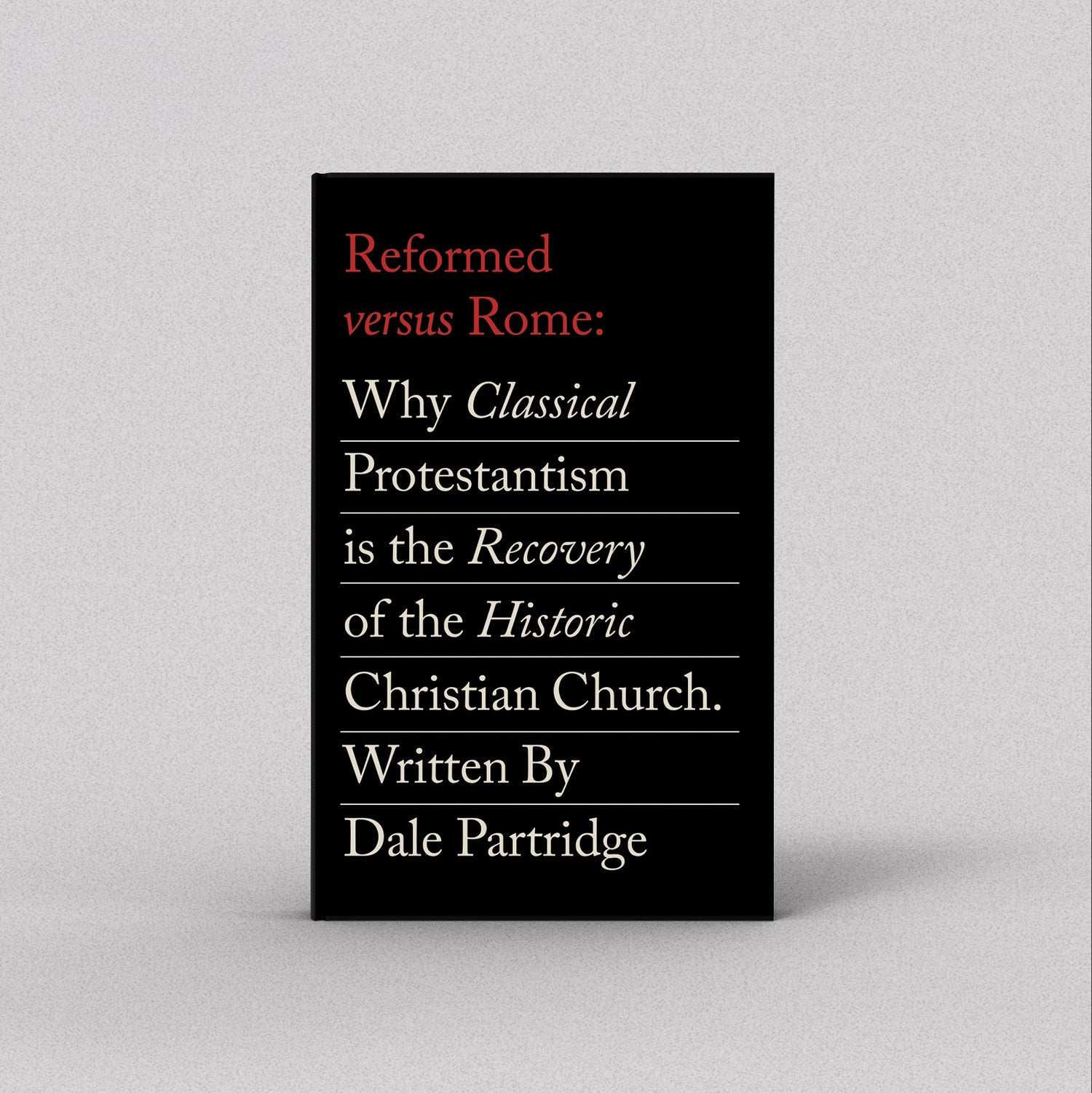 Reformed Versus Rome makes the bold case that Classical Protestantism—what the author calls Reformed Catholicism—stands as the rightful heir of historic Christianity. In this sharp and historically rich defense, Dale Partridge contrasts the doctrine of the Reformers with the doctrine of Rome, showing how Lutherans, Anglicans, and Presbyterians reclaimed the Gospel, worship, and authority of the early church.